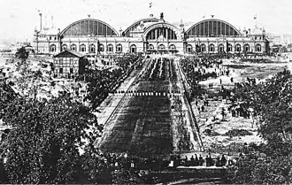 An der Fahrbahn der Gallusanlage endet der ältere Teil der Kaiserstraße. Jenseits der heutigen Fahrbahn, also gerade eben außerhalb der Wallanlagen, stand von 1839 bis 1888 der Taunusbahnhof, der erste Bahnhof der Stadt, links und rechts neben ihm der Main-Neckar-Bahnhof und der Main-Weser-Bahnhof. Auch die ältere Kaiserstraße hatte also bereits die heutige Funktion als Hauptachse zwischen Stadtzentrum und Bahnhof, bis 1888 allerdings nicht zum Hauptbahnhof, sondern zu den Westbahnhöfen.