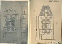 - ↑ Franke 1963, S. 231 zitiert Aram, der als Adresse des Hufeisenhauses fälschlich die Kaiserstraße 21 angab.