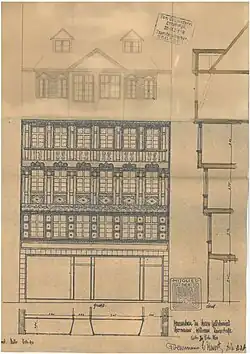 - Nr. 23 und 23a erhielt unter Bäckermeister Franz Bolch eine neue Fassade, die Werkmeister Martin Keppeler entwarf. Bis 1944 befand sich in Nr. 23 das Maßatelier Heinrich Hochheimer.[40] 1938 hatte der Zahnarzt Franz Willscheid seine Praxis in dem Gebäude und behandelte darin den thailändischen König Ananda Mahidol.[41] 1961 wurde das Gebäude vom Bürobedarfshaus Fegert-Staiger genutzt, außerdem betrieb Eduard Vock darin die Pfandleihanstalt K. Stahl.