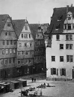 - Das Haus Nr. 28 wurde nach dem Zweiten Weltkrieg zunächst als eingeschossiger Notbau für das Textilgeschäft Geschwister Holder wiederhergestellt und 1953 dreistöckig ausgebaut.[57]