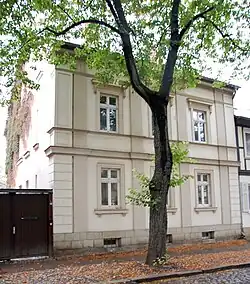Das zweigeschossige Gebäude wurde in der Zeit um 1860 gebaut. Die Fassade ist im Stil des Klassizismus gestaltet. So bestehen profilierte Rahmungen der Fenster und Pilastervorlagen.