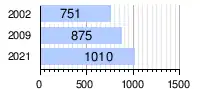 | 2009 | 875[3] |