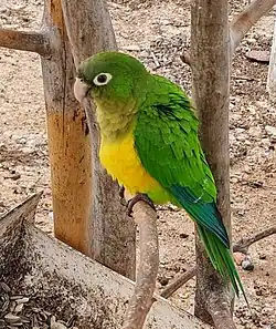 - Eupsittula cactorum caixana (Spix, 1824) – Ursprünglich als eigene Art Aratinga caixana beschrieben.[2] Bewohnt das linke Ufer des Rio São Francisco. Diese Unterart kommt von Nordwest-Bahia über Piauí, West-Pernambuco bis nach Ceará und Maranhão vor. Ihre Vertreter neigen zu allgemein etwas blasserem Gefieder als E. c. cactorum. Augenfälligstes Unterscheidungsmerkmal ist das leuchtend gelbe Gefieder am Bauch und der Unterbrust, dem die orangen Einflüsse völlig fehlen.[1]