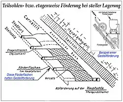 | Abbautechnik | Kammerpfeilerbau mit Teilsohlenförderung | ||