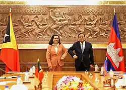 2015 wurde mit Felicidade de Sousa Guterres von Staatspräsident Taur Matan Ruak die erste Botschafterin Osttimors in Kambodscha ernannt.[5] Die Akkreditierung erfolgte am 28. April 2016.[6][7]