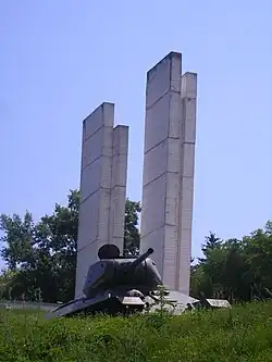 - Denkmal an den Zweiten Weltkrieg am linken Ufer des Hron mit einem Panzer Typ T-34