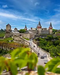 Kamjanez-Podilskyj ist eine der ältesten Städte der Ukraine. Das genaue Alter der Stadt lässt sich nicht angeben. In Chroniken wird der Ort schon im Jahr 1106 als Stadt erwähnt. Vom 14. bis zum 18. Jahrhundert erlebte Kamjanez eine Aufschwung- und Blütezeit. Ab 1373 stand sie unter polnischer Herrschaft als Sitz der Woiwodschaft Podolien; seit dem 14. Jahrhundert war Kamjanez eine der bedeutendsten polnischen Festungen in der Ukraine. Mönche vieler Orden zogen hierher: zuerst die Dominikaner, dann die Franziskaner, später die Jesuiten (1608), Barfüßige Karmeliter (1623), Dominikaner (1615). Doch von 1672 bis 1699 gehörte die Stadt zum Osmanischen Reich. Ein Minarett wurde später in die Peter-und-Paul-Kathedrale integriert. Bei der zweiten Teilung Polens kam Kamjanez 1793 zum Russischen Reich und war Hauptstadt des Gouvernements Podolien. Im Jahr 1897 hatte die Stadt 39.113 Einwohner (50 % Juden, 30 % Polen), 16 russisch-orthodoxe, vier römisch-katholische und eine armenische Kirche, eine Synagoge, zwei russisch-orthodoxe und drei römisch-katholische Klöster sowie zwei Gymnasien.[1] In Garnison lagen das 1.Kuban- und das 1. Wolga-Kosaken-Regiment.