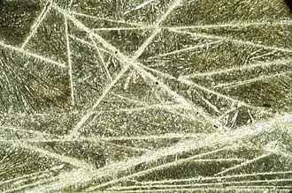 - ↑ F. Faure, G. Trolliard, C. Nicollet und J.-M. Montel: A developmental model of olivine morphology as a function of the cooling rate and the degree of undercooling. In: Contribution to Mineralogy and Petrolog. Band 145, 2003, S. 251–263.