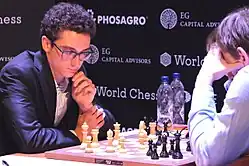 - ↑ Caruana fordert den Schachweltmeister Carlsen heraus. In: Neue Zürcher Zeitung, 29. März 2018; abgerufen am 9. April 2018.