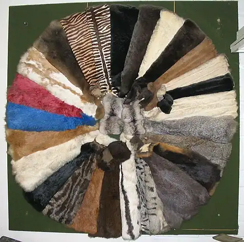 - ↑ a b c d e Alexander Tuma: Pelz-Lexikon. Pelz- und Rauhwarenkunde. XVII. Band. Verlag Alexander Tuma, Wien 1950. Stichworte „Arcansas Seal“, „Belgian Tiger“, „Bleuté Squirrelette“, „Blocked Lapin“, „Erminette“
