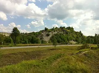 Der Kanstein mit Standort der ehemaligen Burg. Heute Teil des Steinbruchs. | ||