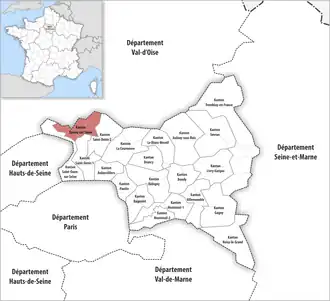 ![]() Lage des Kantons Épinay-sur-Seine im Département Seine-Saint-Denis | |