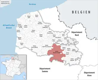 ![]() Lage des Kantons Avesnes-le-Comte im Département Pas-de-Calais | |
