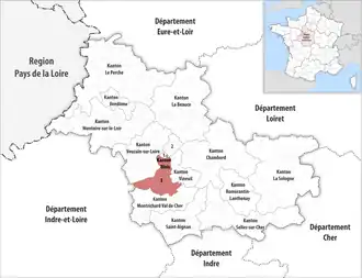 - ↑ Nur die Fläche der ehemaligen Gemeinden Feings, Fougères-sur-Bièvre und Ouchamps, der Rest gehört zum Kanton Montrichard Val de Cher.