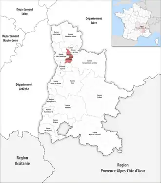 - ↑ Nur der westliche Teil der Gemeinde, der Rest gehört zum Kanton Romans-sur-Isère.