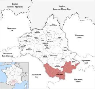 ![]() Lage des Kantons Causses-Rougiers im Département Aveyron | |
