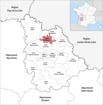 ![]() Lage des Kantons Châtellerault-1 im Département Vienne | |
