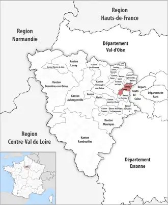 ![]() Lage des Kantons Chatou im Département Yvelines | |