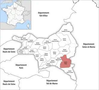![]() Lage des Kantons Gagny im Département Seine-Saint-Denis | |