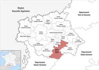 ![]() Lage des Kantons Gascogne-Auscitaine im Département Gers | |