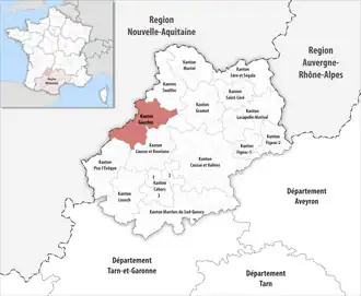 ![]() Lage des Kantons Gourdon im Département Lot | |