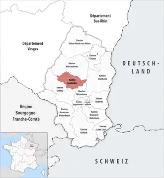![]() Lage des Kantons Guebwiller im Département Haut-Rhin | |