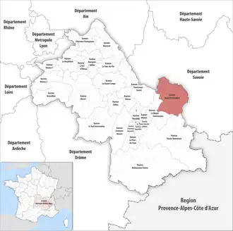 ![]() Lage des Kantons Le Haut-Grésivaudan im Département Isère | |