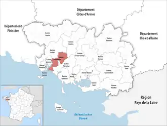 ![]() Lage des Kantons Hennebont im Département Morbihan | |