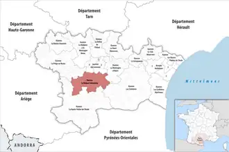 ![]() Lage des Kantons La Région Limouxine im Département Aude | |