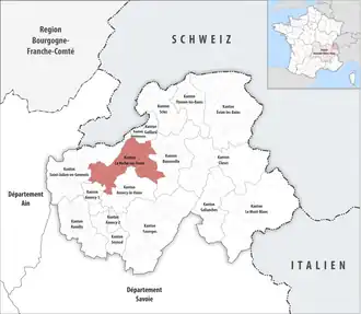 ![]() Lage des Kantons La Roche-sur-Foron im Département Haute-Savoie | |
