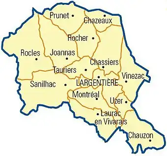 Der Kanton Largentière war 130,12 km² groß und hatte 8073 Einwohner (Stand 2012).