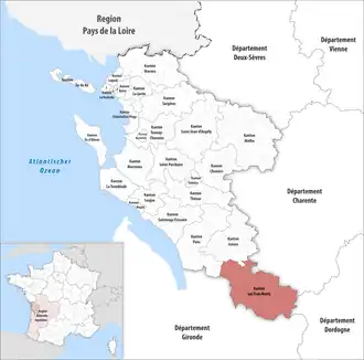 ![]() Lage des Kantons Les Trois Monts im Département Charente-Maritime | |