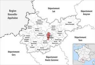 ![]() Lage des Kantons Montauban-1 im Département Tarn-et-Garonne | |