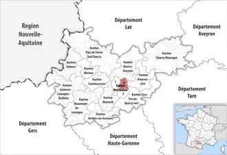 ![]() Lage des Kantons Montauban-2 im Département Tarn-et-Garonne | |