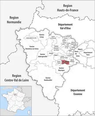 ![]() Lage des Kantons Montigny-le-Bretonneux im Département Yvelines | |