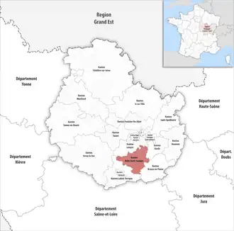 ![]() Lage des Kantons Nuits-Saint-Georges im Département Côte-d’Or | |