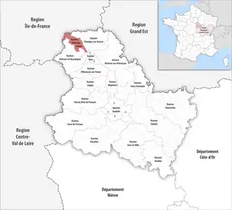 ![]() Lage des Kantons Pont-sur-Yonne im Département Yonne | |