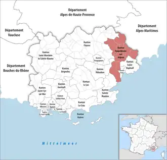![]() Lage des Kantons Roquebrune-sur-Argens im Département Var | |