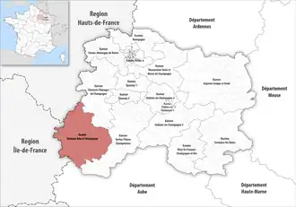 ![]() Lage des Kantons Sézanne-Brie et Champagne im Département Marne | |