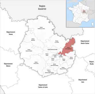 ![]() Lage des Kantons Saint-Apollinaire im Département Côte-d’Or | |