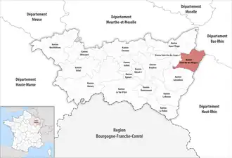 ![]() Lage des Kantons Saint-Dié-des-Vosges-2 im Département Vosges | |