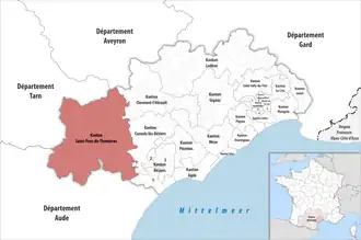 ![]() Lage des Kantons Saint-Pons-de-Thomières im Département Hérault | |
