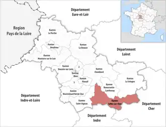 ![]() Lage des Kantons Selles-sur-Cher im Département Loir-et-Cher | |