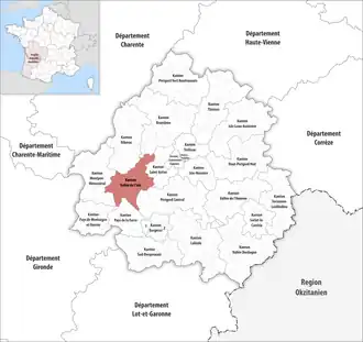![]() Lage des Kantons Vallée de l’Isle im Département Dordogne | |