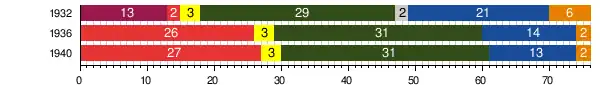 Bei den Wahlen von 1904 bis 2024 erreichten die angetretenen Parteien folgende Sitzzahlen:[8][3]