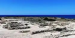 Die Halbinsel wurde, je nach Veröffentlichung, nach der Mitte des 13. Jahrhunderts v. Chr. von Mykenern besiedelt oder von einheimischen Gruppen erbaut. Tatsächlich kam es zur Einführung von Mykenischer Keramik der Zeitstufe SH III C früh (ca. 1190–1150 v. Chr.),[1] die einen Anteil an der Keramik von 40 bis 60 % erreichte. Von der Siedlung sind Teile der zyklopischen Festungsmauern erhalten, die den Schutz der Halbinsel zur Landseite sicherstellten, aber auch zur See. Zudem sind die Fundamente einiger Gebäude noch sichtbar, unter denen sich zwei recht große Bauwerke befinden. In einem fanden sich Überreste von Speisen und Getränken, die eine große Zahl von Menschen hinterlassen haben muss, im anderen große Mengen an Vorratsgefäßen. Nach einer ersten Zerstörung um 1175 v. Chr. wurde die Siedlung zwar wieder aufgebaut, jedoch um 1150 v. Chr. endgültig aufgegeben.