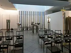 Gebets- und Besinnungsraum im Flughafen München Neuere Entwicklungen sind „Bahnhofs-“ und „Flughafenkapellen“; weiterhin wurden in neuerer Zeit Kapellen auch in Fußballstadien eingerichtet, in Deutschland im Berliner Olympiastadion, dem Deutsche Bank Park in Frankfurt am Main sowie der Veltins-Arena in Gelsenkirchen. Hier finden regelmäßig Taufen und kirchliche Trauungen statt.