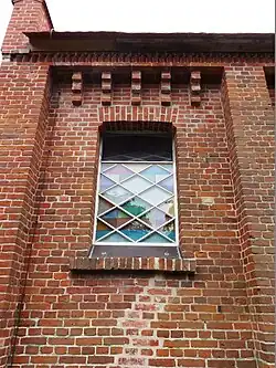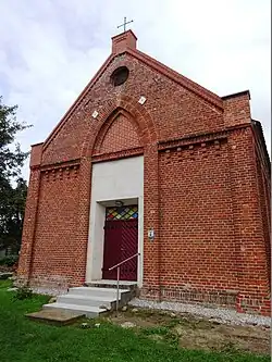 Der kleine ziegelgedeckte Backsteinbau wurde 1841/1842 in neugotischen Formen errichtet. Lisenen verstärken den mit einem gestuften Konsolfries und Zahnfriesen verzierten Bau. An den Giebeln sind monumentale Spitzbogenblenden angebracht, die nach Westen als Portaleinfassung gehalten sind. Oberhalb der Giebel befinden sich zwei Türmchen mit je einem handgeschmiedeten Kreuz. Die Inschrift auf der Spiegelfläche über dem Portal ist verwittert. Die rautenförmig verglasten Rechteckfenster weisen in den oberen Ecken Formsteine mit Viertelkreisprofil auf. Die Fenster waren ursprünglich aus Bleiglas gearbeitet und wiesen einen Mittelholm auf. Die Scheiben waren in Rauten gegliedert, so dass sich in jeder Scheibe 188 Glaselemente befanden. Nach dem Brand 1937 wurden sie durch Scheiben mit nur noch 27 Rauten ersetzt.