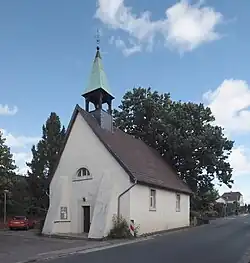 Die Wände bestehen aus verputztem Bruchsteinmauerwerk.[8] Die gemauerten Giebel sind steil. Auf dem Westteil des Ziegeldachs hängt in einem hölzernen Dachreiter die Kapellenglocke.