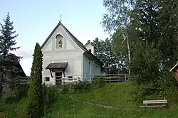 Bei der Kapelle handelt es sich um eine zweijochige Kapelle mit rechteckigem Grundriss und östlich anschließendem, eingezogenen Rechteckchor mit dreiseitigem Abschluss. Das Satteldach ist schindelgedeckt, wobei sich über der Stirnwand des Chors eine ebenfalls holzverschindelte, zweibogige Glockenwand befindet. Der rechteckige Eingang der Kapelle befindet sich in der westseitigen Giebelwand, die zudem durch eine Rundbogennische im Giebelfeld und seitlich des Einganges durch zwei Fenster geprägt ist. In der Nord- und Südwand finden sich zudem je zwei, an den Chorseiten jeweils ein Fenster. Die Außengestaltung ist von der klassizistischen Gliederung aus rauem, grünen Spritzputz und weißen glatten Putzfelden mit teilweise Zeichnungen von Pilastern bzw. Doppelpilastern geprägt. Der Sockelbereich wurde durch Spritzwurf in Rosa akzentuiert.